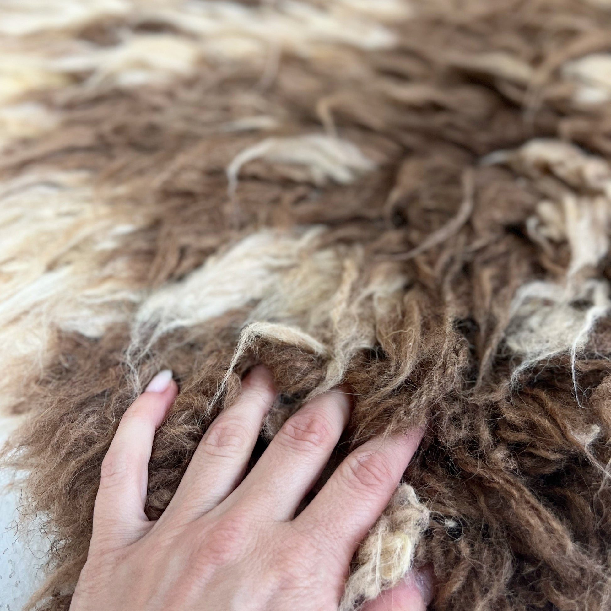 We collected this beautiful vintage gabbeh rug for its cozy, cool feel. Perfect for the bohemian inspired living room, bedroom, or den. A gabbeh rug is traditionally a sleeping rug. The pile is thick and cozy and hand-spun and woven of 100% sheep's wool. These rugs is popular among the populations of the Zagros Mountains of Iran, including Kurdish, Luri and Qashqai people. The gabbeh is usually woven by women. The word “gabbeh” comes from the Persian گبه, meaning raw, natural, uncut.