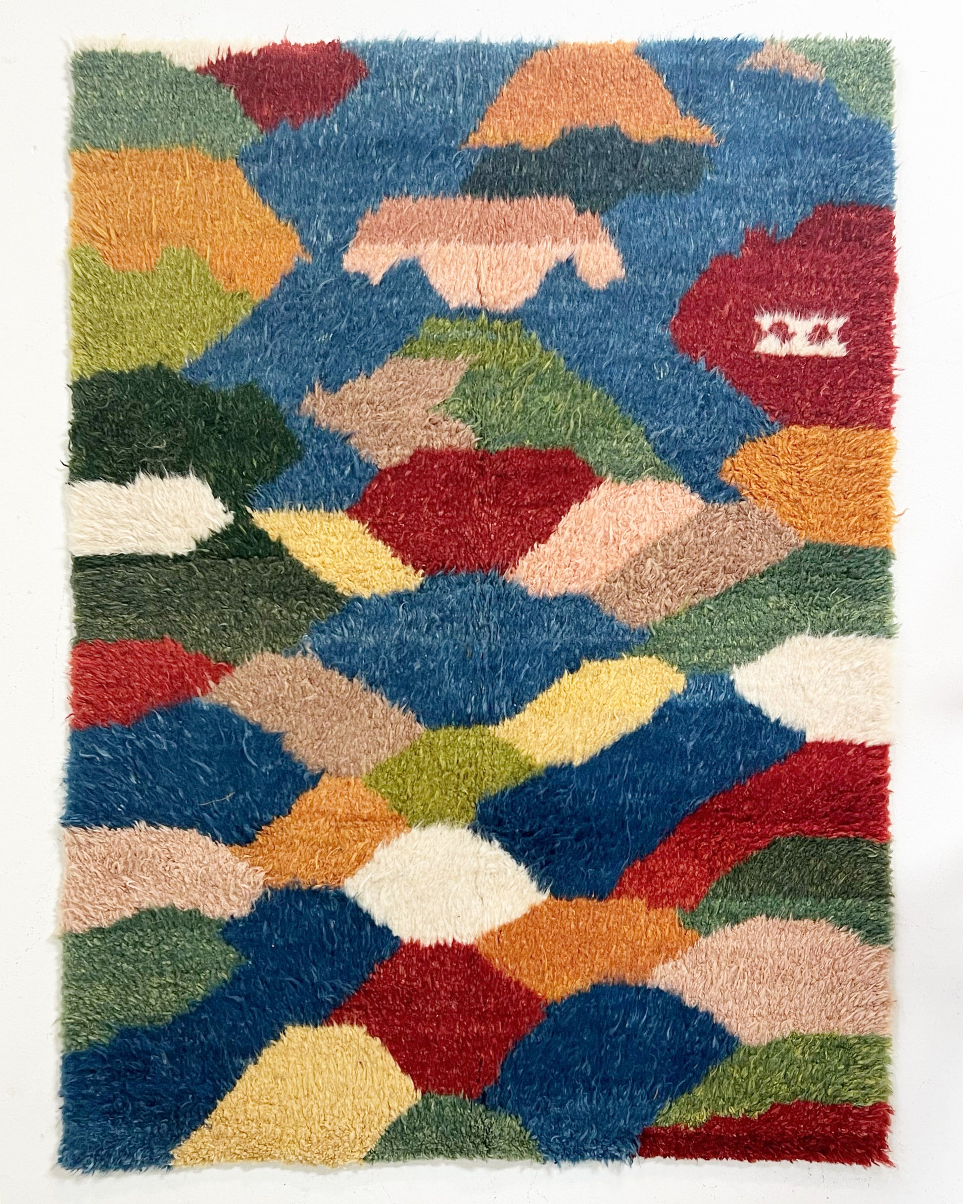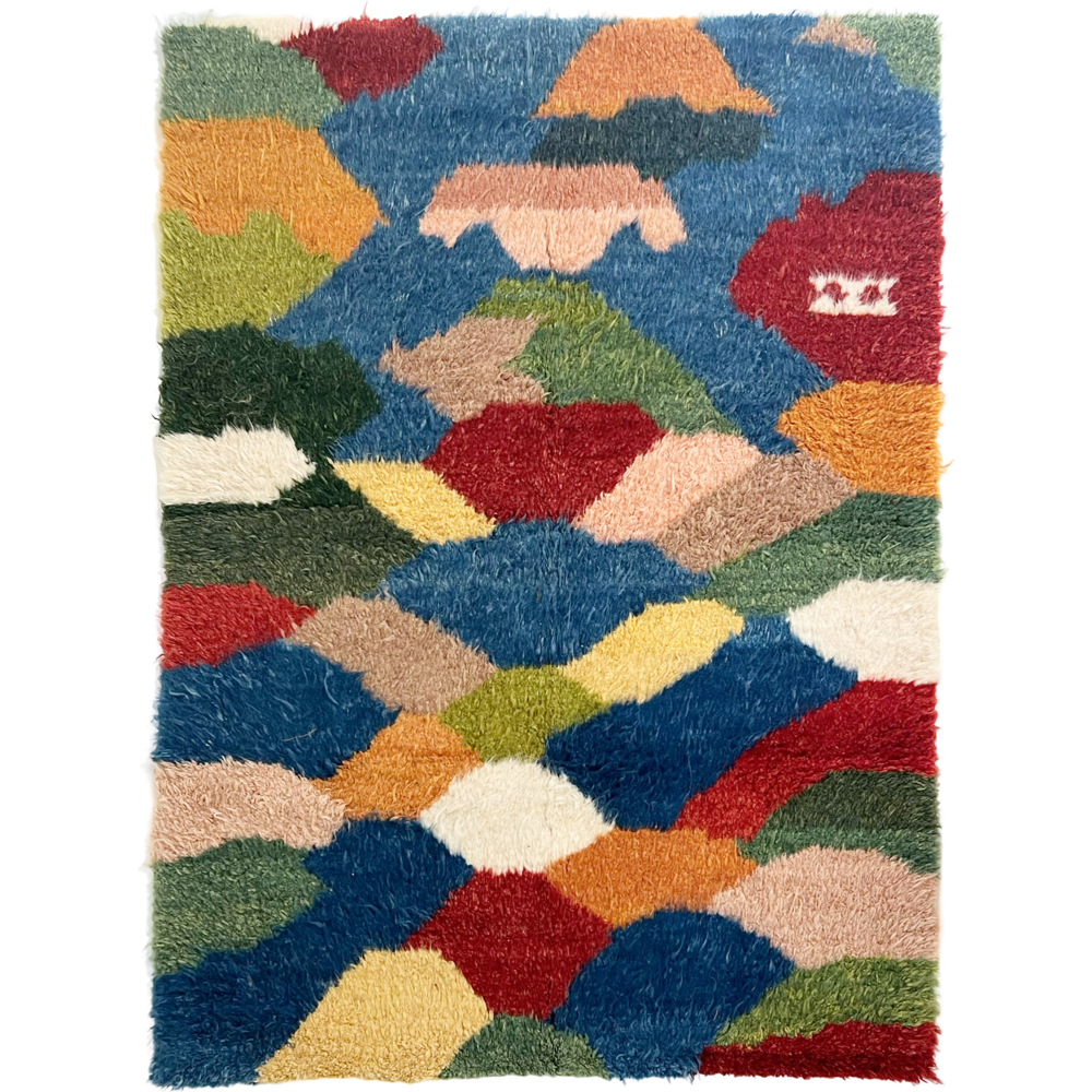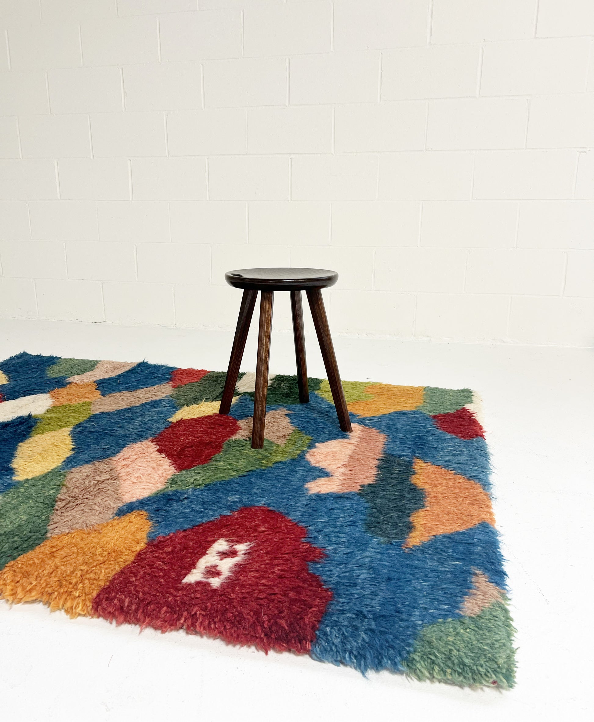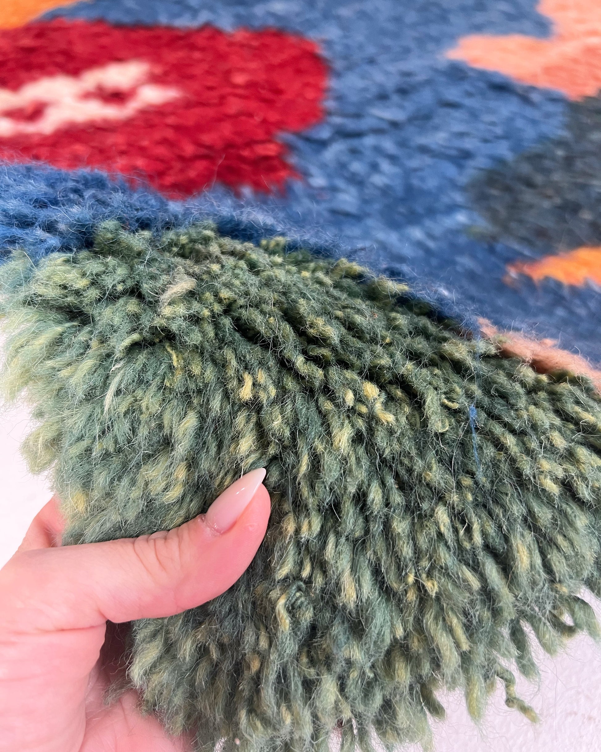 We collected this beautiful vintage gabbeh rug for its cozy, cool feel. Perfect for the bohemian inspired living room, bedroom, or den. A gabbeh rug is traditionally a sleeping rug. The pile is thick and cozy and hand-spun and woven of 100% sheep's wool. These rugs is popular among the populations of the Zagros Mountains of Iran, including Kurdish, Luri and Qashqai people. The gabbeh is usually woven by women. The word “gabbeh” comes from the Persian گبه, meaning raw, natural, uncut.