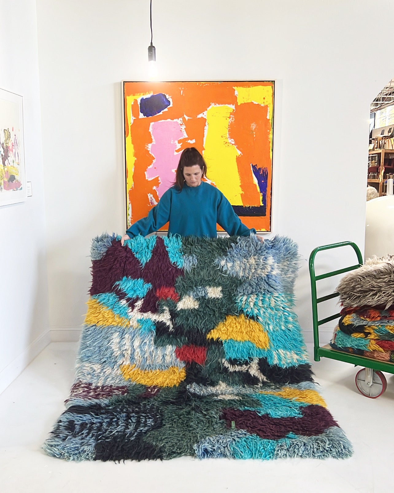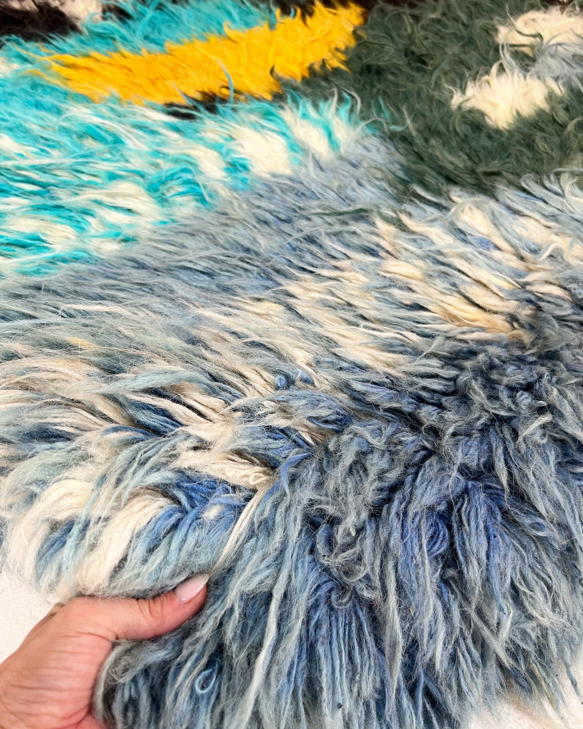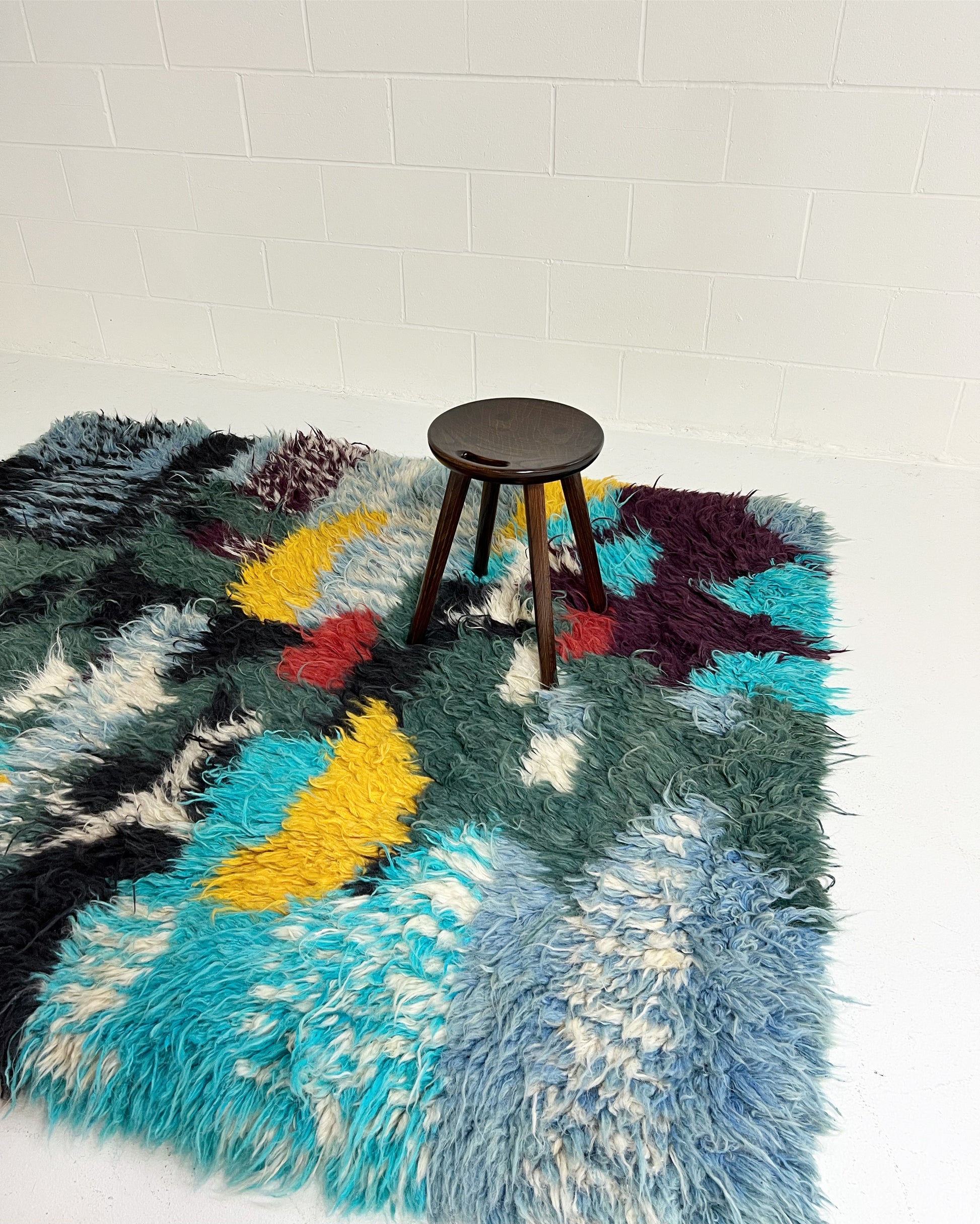 We collected this beautiful vintage gabbeh rug for its cozy, cool feel. Perfect for the bohemian inspired living room, bedroom, or den. A gabbeh rug is traditionally a sleeping rug. The pile is thick and cozy and hand-spun and woven of 100% sheep's wool. These rugs is popular among the populations of the Zagros Mountains of Iran, including Kurdish, Luri and Qashqai people. The gabbeh is usually woven by women. The word “gabbeh” comes from the Persian گبه, meaning raw, natural, uncut.