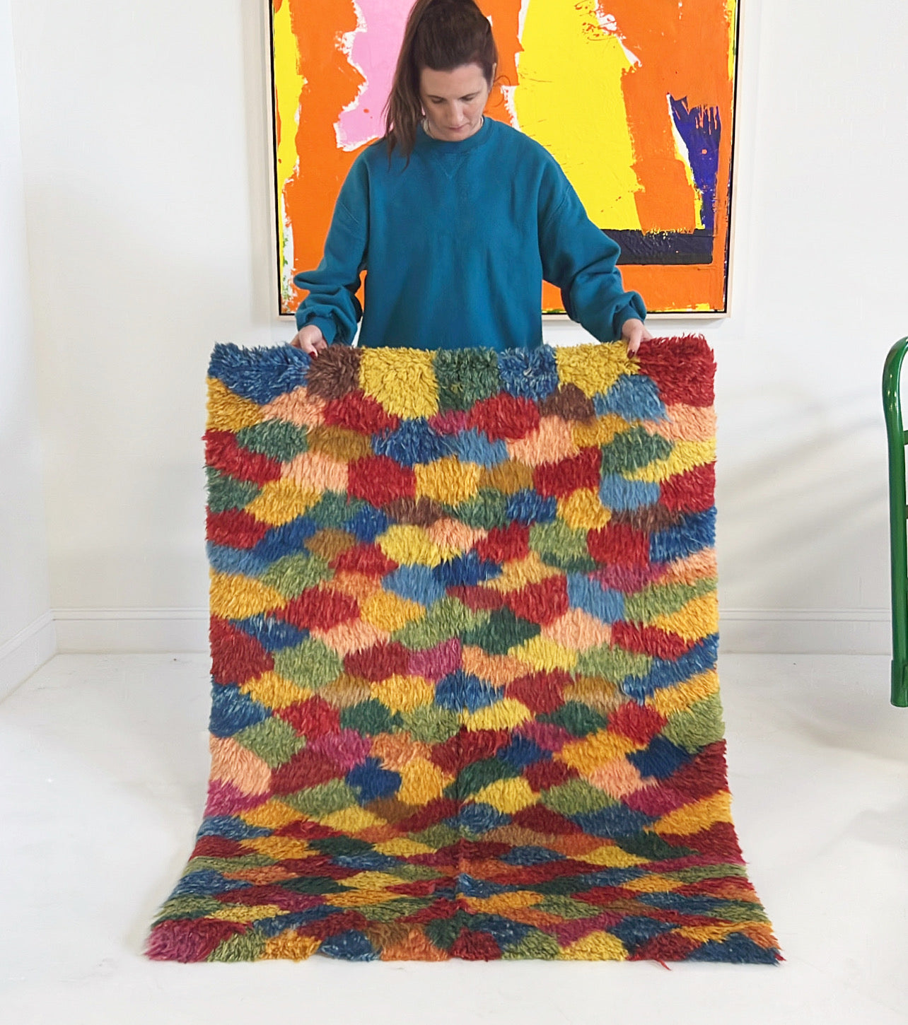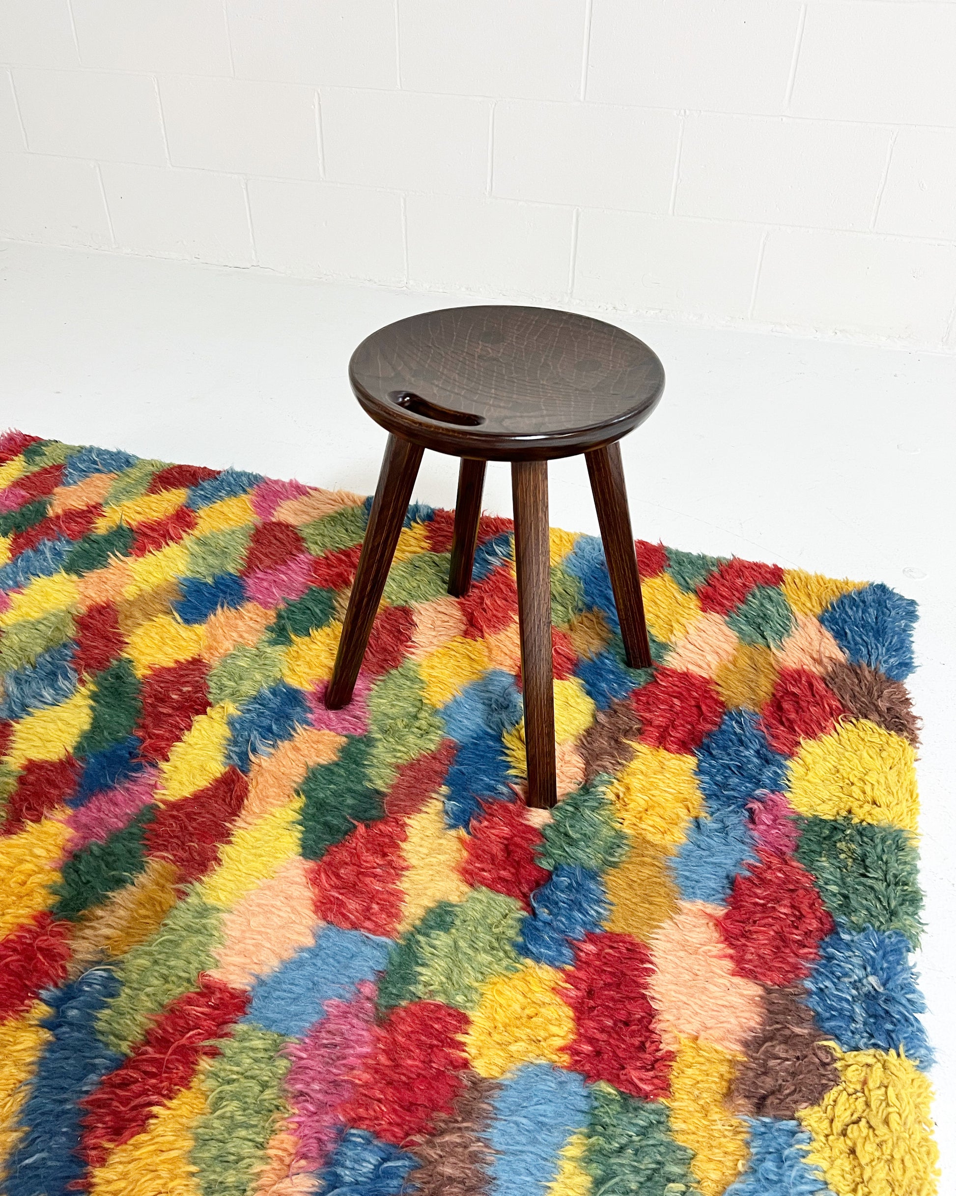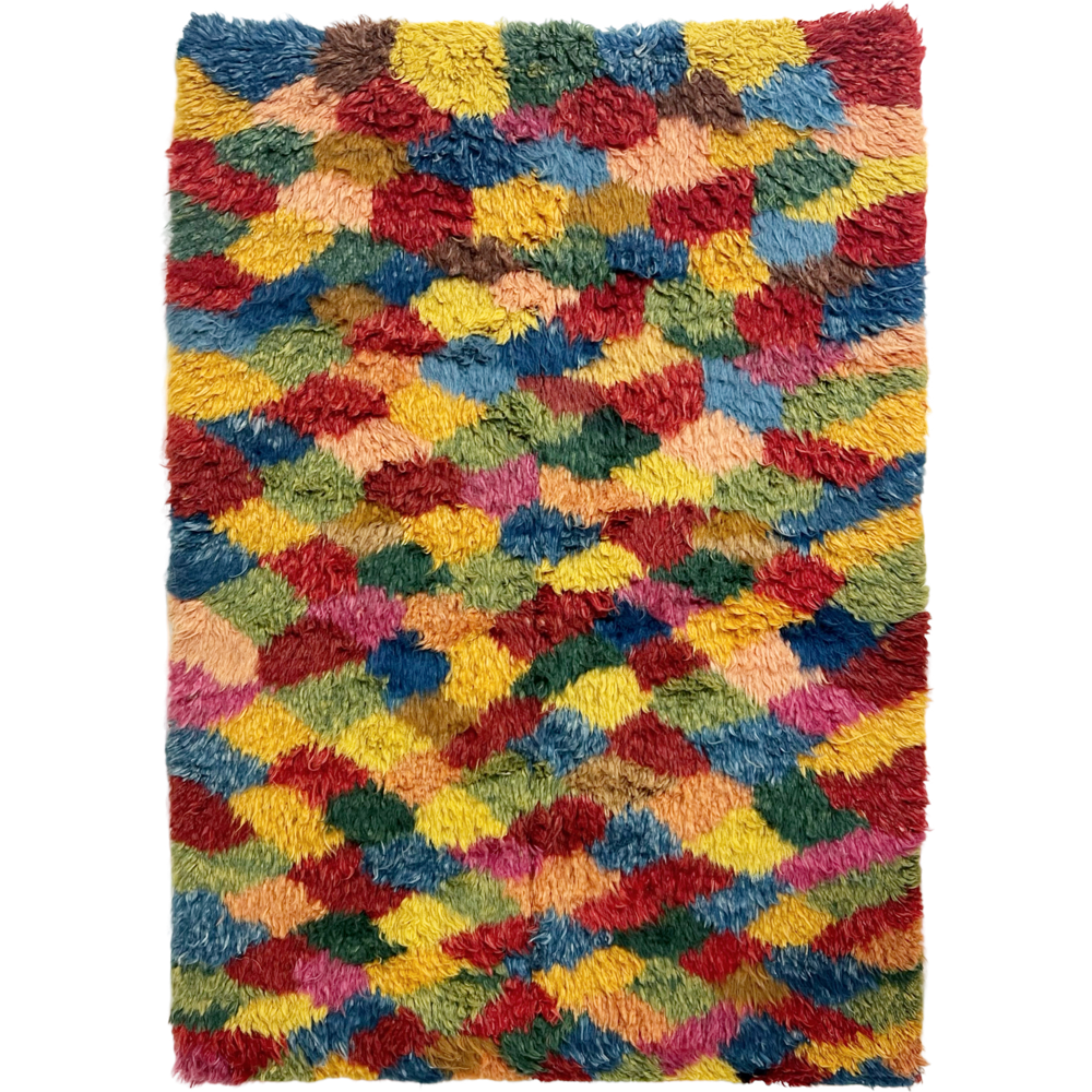 We collected this beautiful vintage gabbeh rug for its cozy, cool feel. Perfect for the bohemian inspired living room, bedroom, or den. A gabbeh rug is traditionally a sleeping rug. The pile is thick and cozy and hand-spun and woven of 100% sheep's wool. These rugs is popular among the populations of the Zagros Mountains of Iran, including Kurdish, Luri and Qashqai people. The gabbeh is usually woven by women. The word “gabbeh” comes from the Persian گبه, meaning raw, natural, uncut.