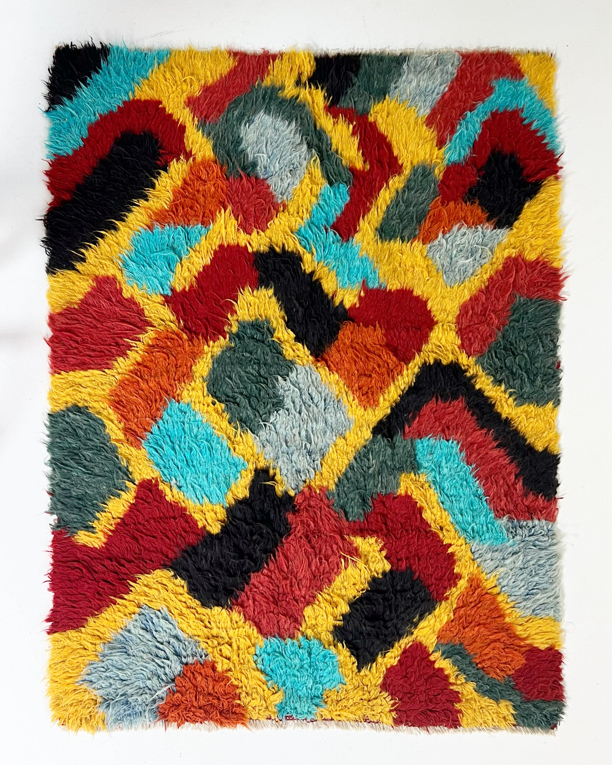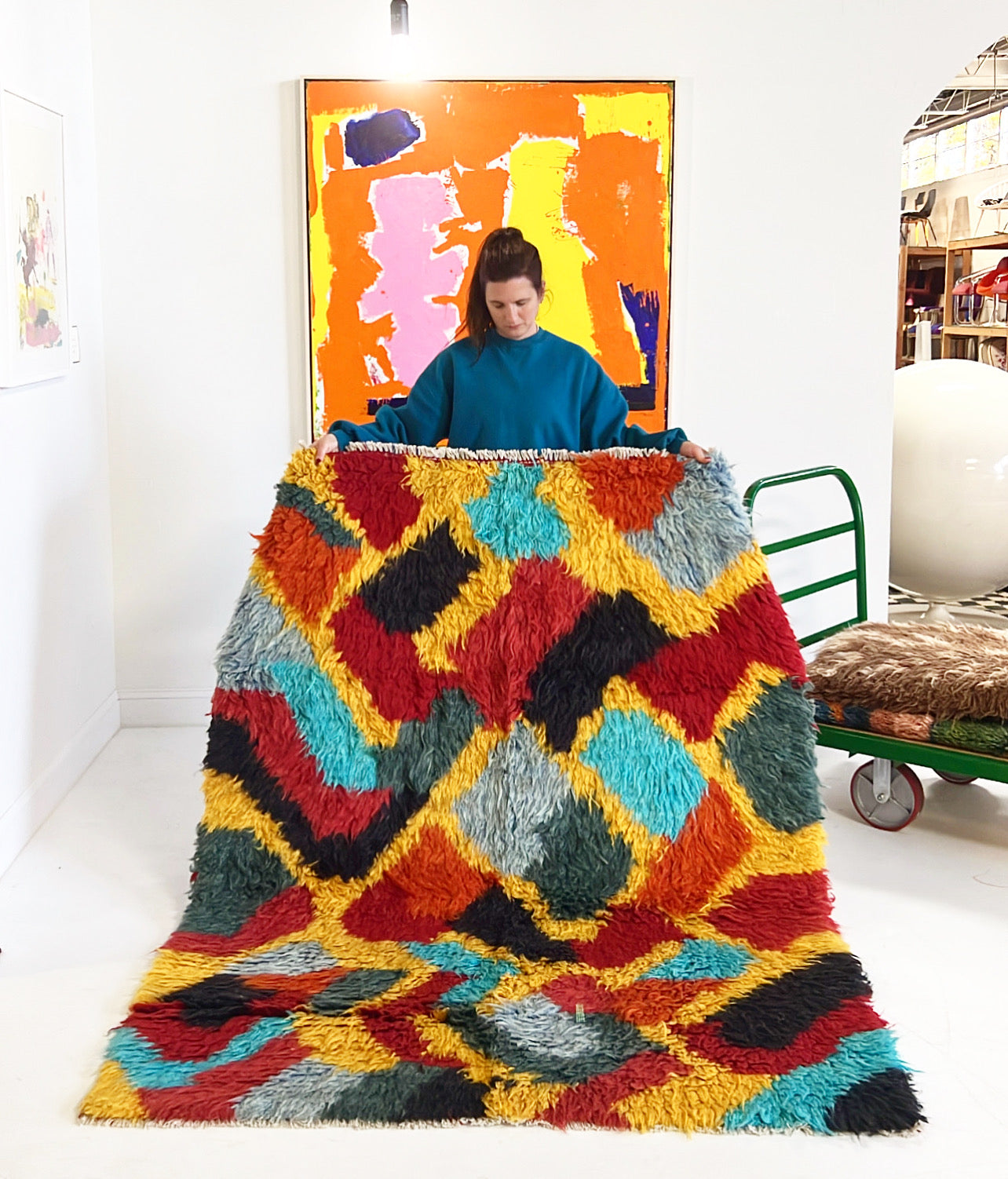 We collected this beautiful vintage gabbeh rug for its cozy, cool feel. Perfect for the bohemian inspired living room, bedroom, or den. A gabbeh rug is traditionally a sleeping rug. The pile is thick and cozy and hand-spun and woven of 100% sheep's wool. These rugs is popular among the populations of the Zagros Mountains of Iran, including Kurdish, Luri and Qashqai people. The gabbeh is usually woven by women. The word “gabbeh” comes from the Persian گبه, meaning raw, natural, uncut.