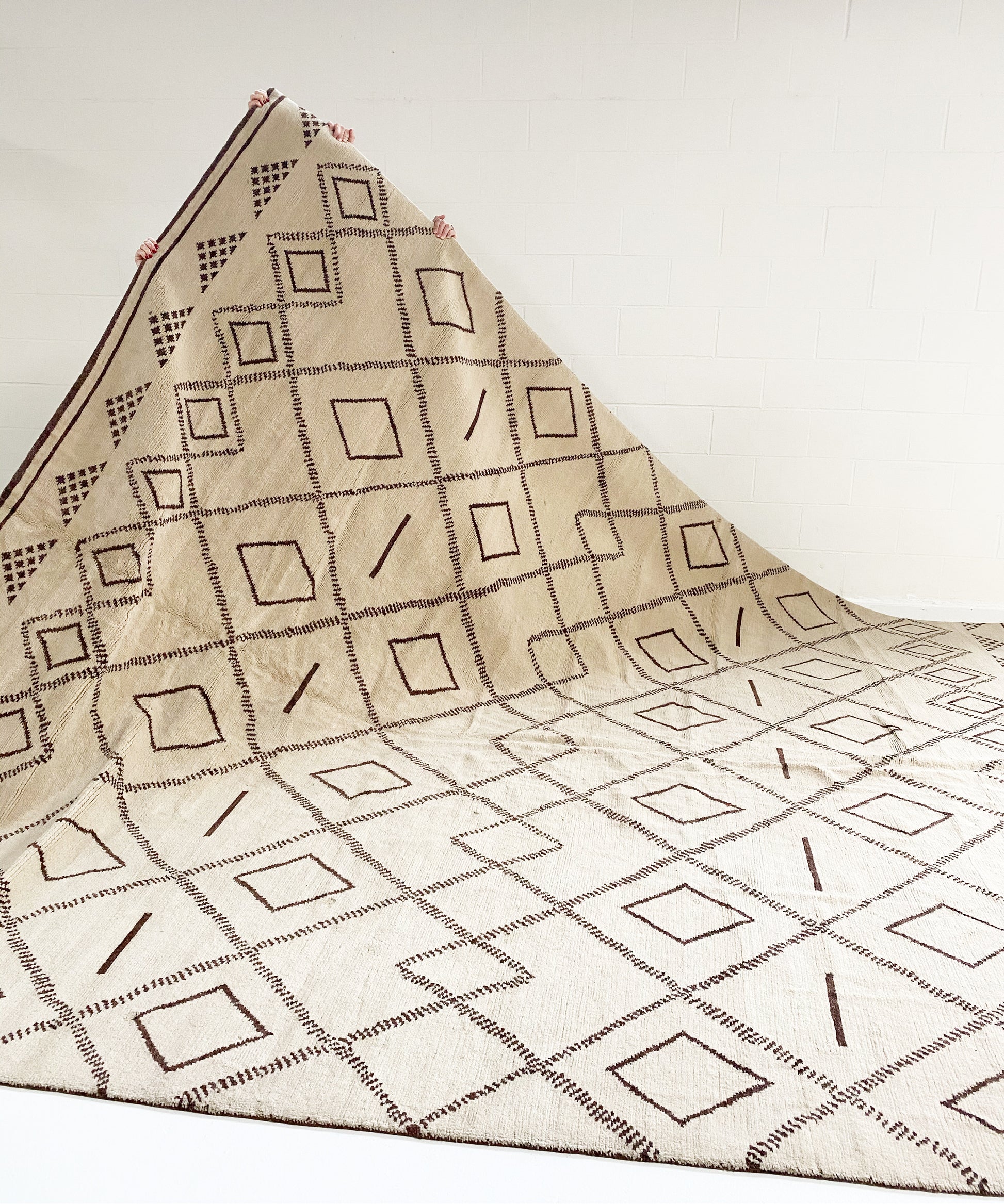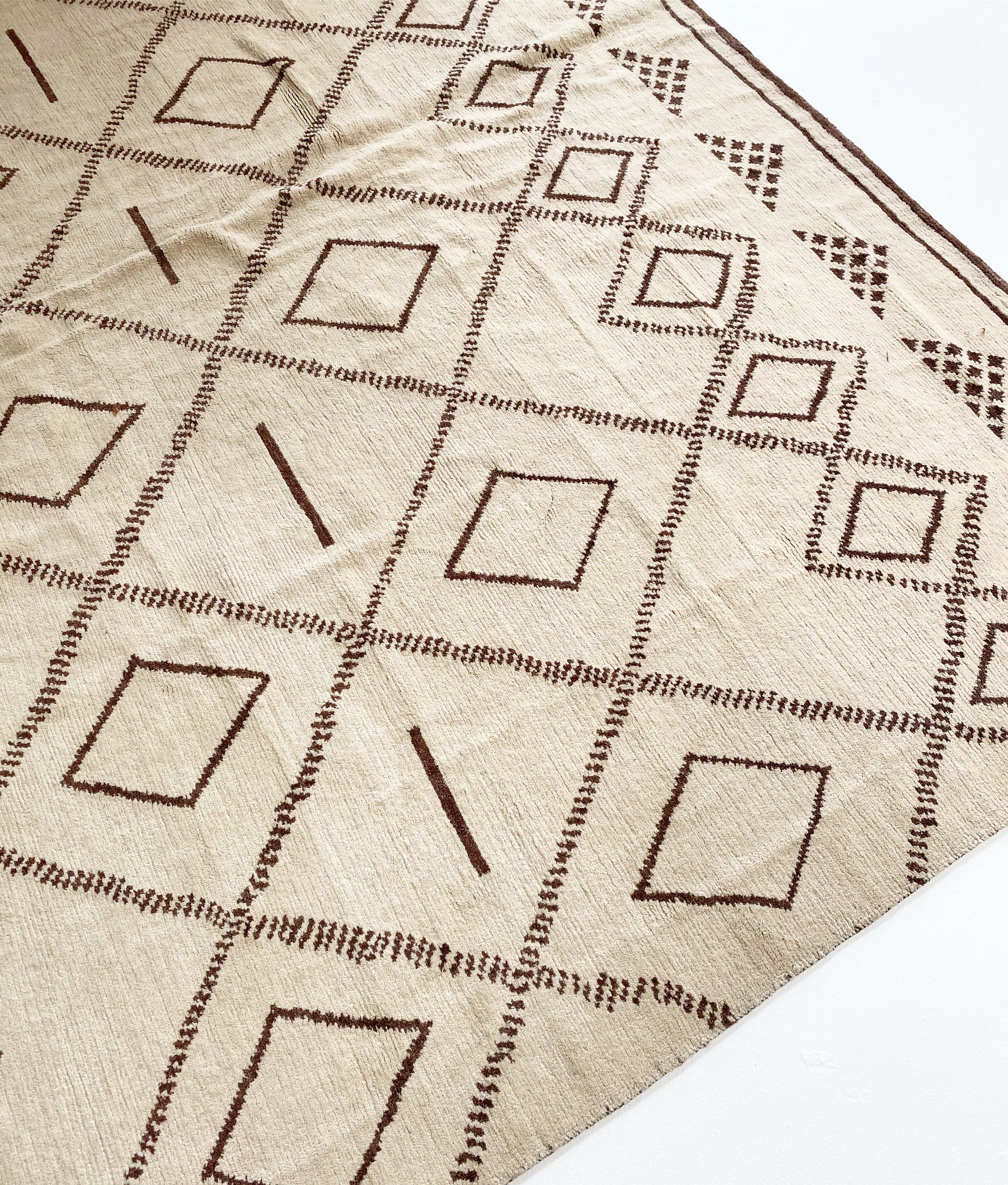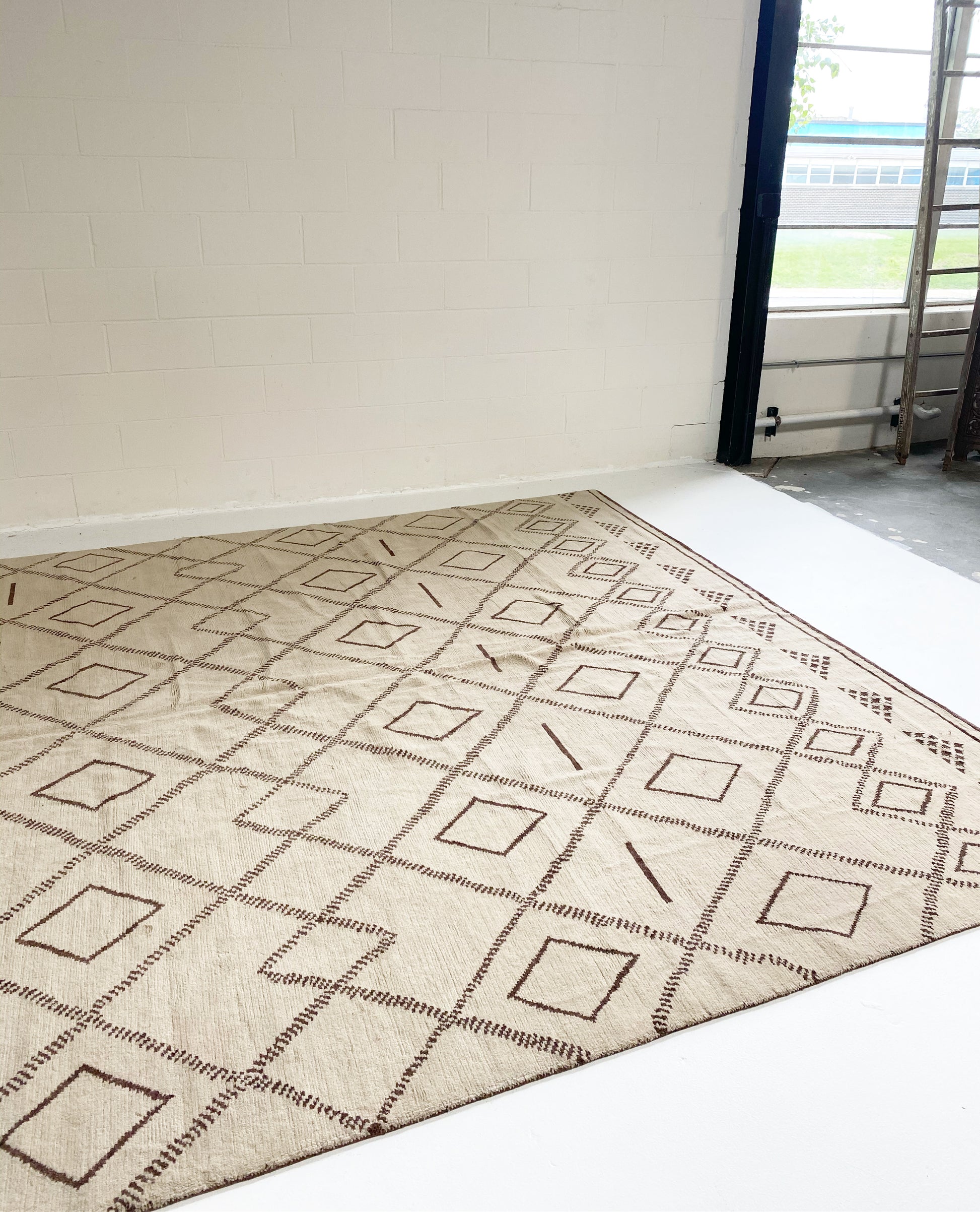 We collected this gorgeous Moroccan rug for its cozy cool feel. Perfect for the bohemian inspired living room, bedroom, or den.