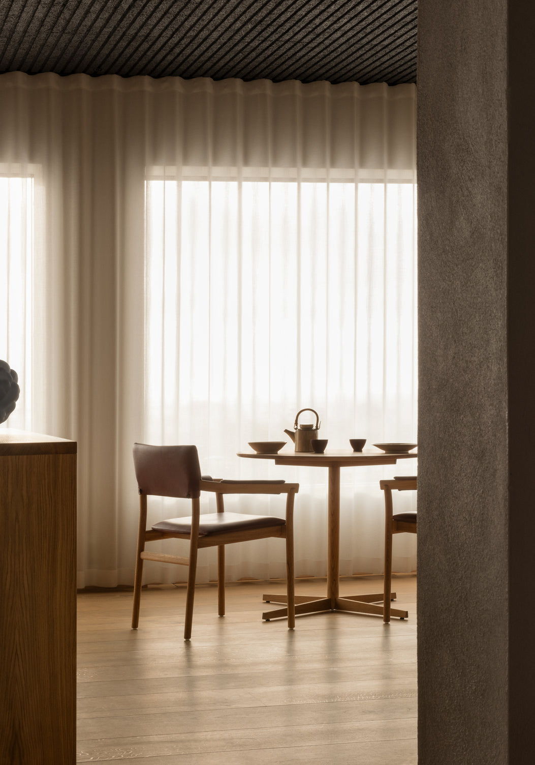 The Vyn chair in oak needed to be welcoming with an exclusive, elegant feeling, and lovely details and great comfort. Fine-dining furniture has high prerequisites. “Some guests can sit for five hours,” says designer Anton Björsing. The chair is up to it.