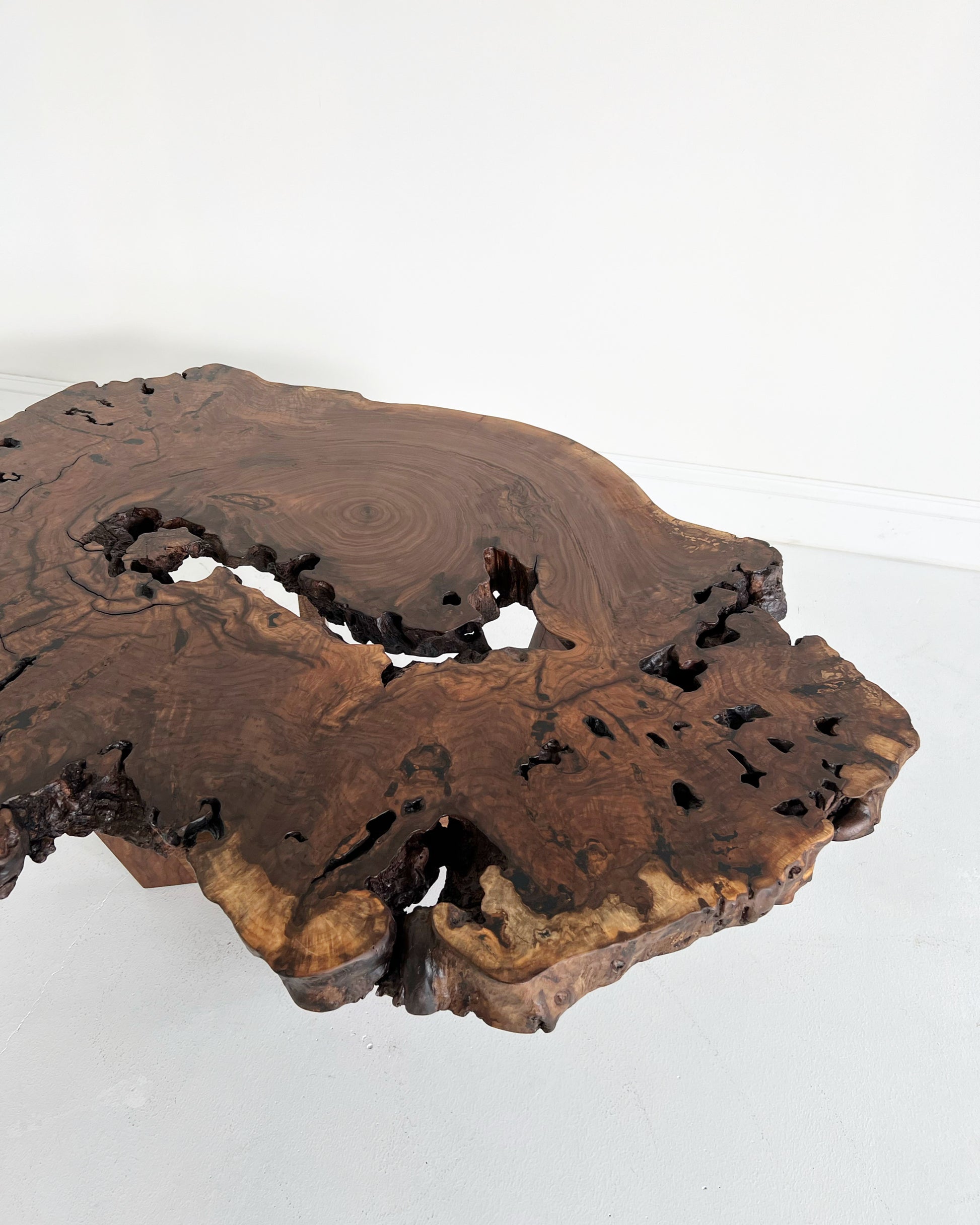 A beautiful, one-of-a-kind coffee table crafted from a walnut burl slab. The Burl Slab Coffee Table is part of an Edition of 10 and exclusive to Forsyth.