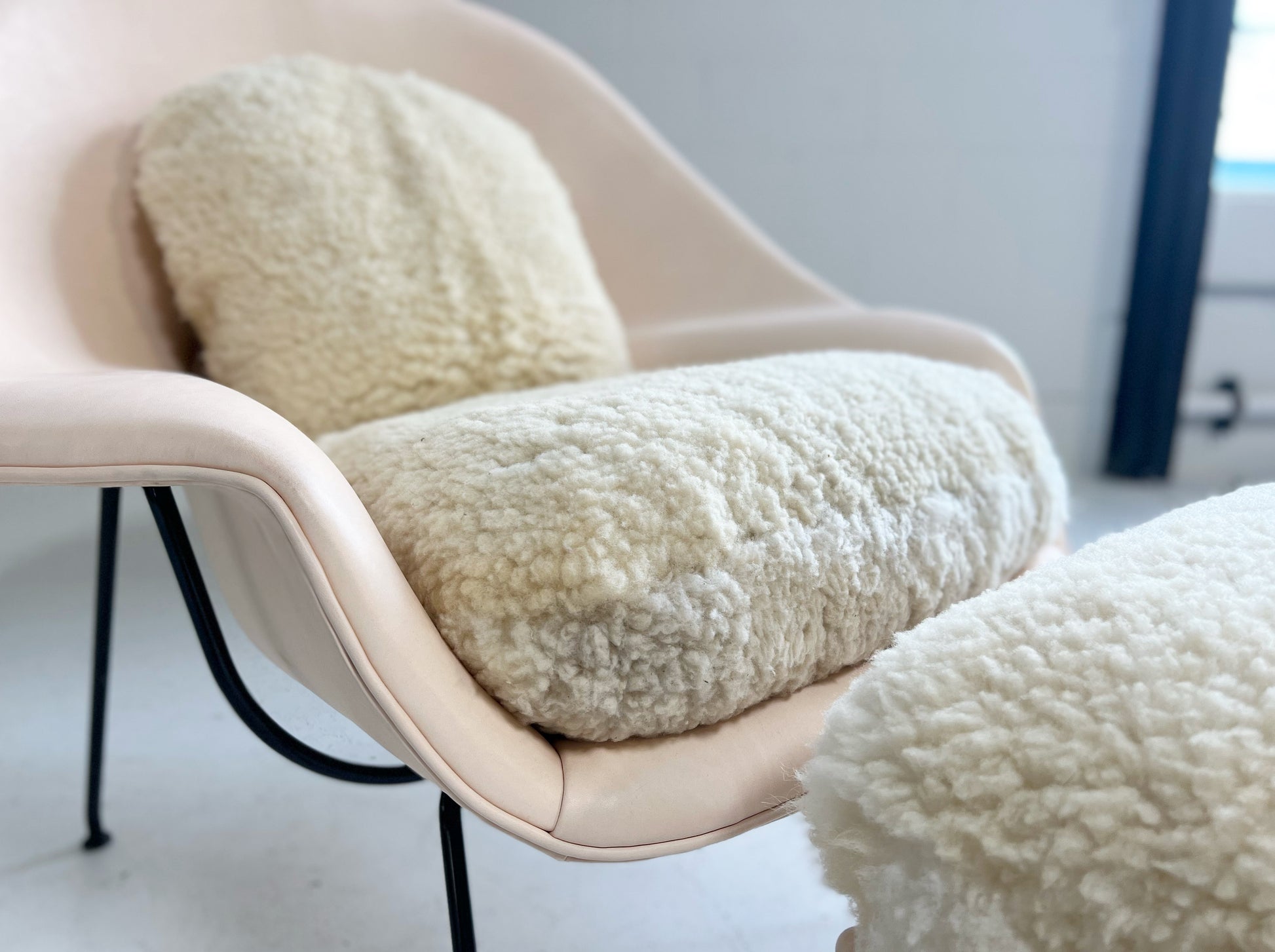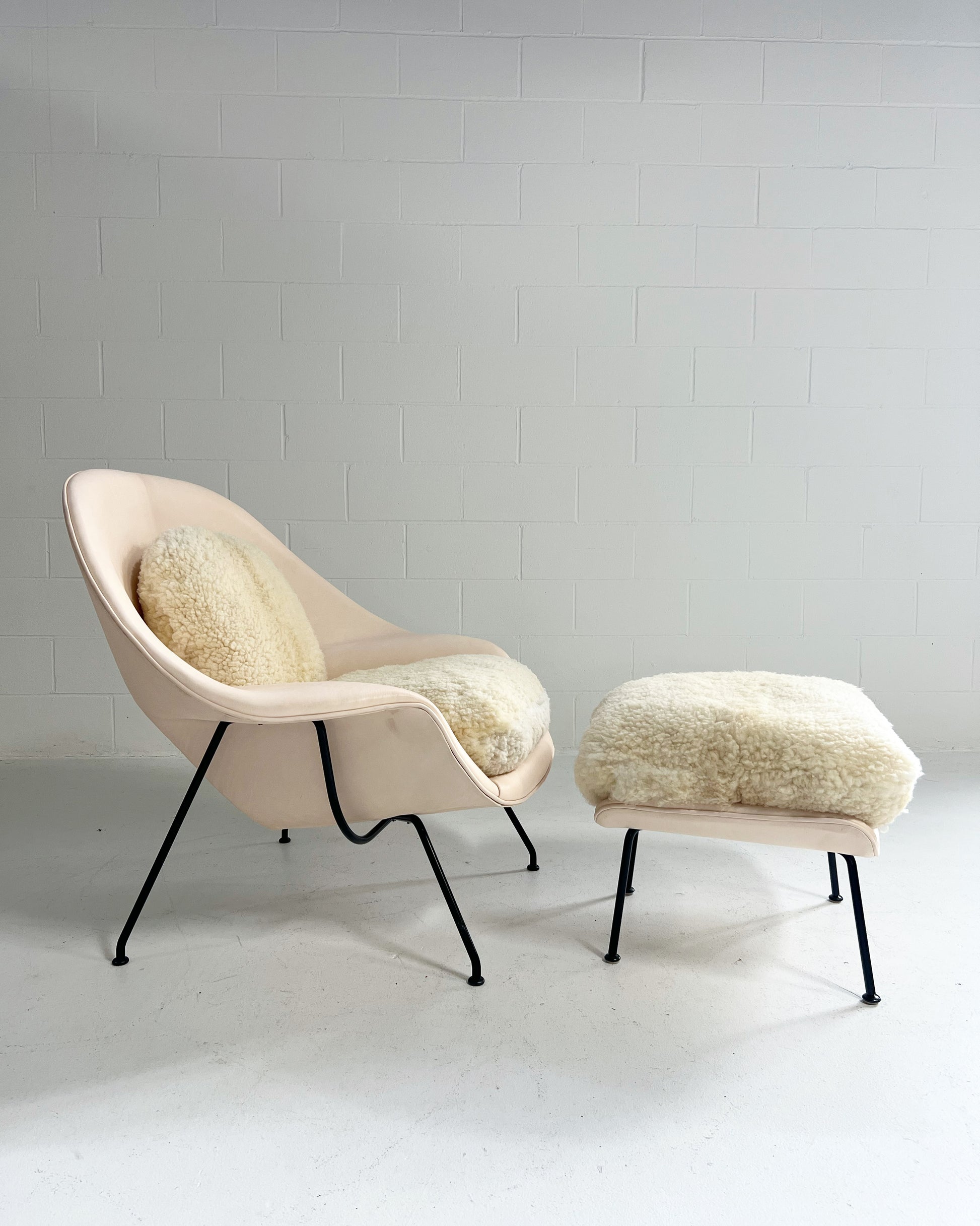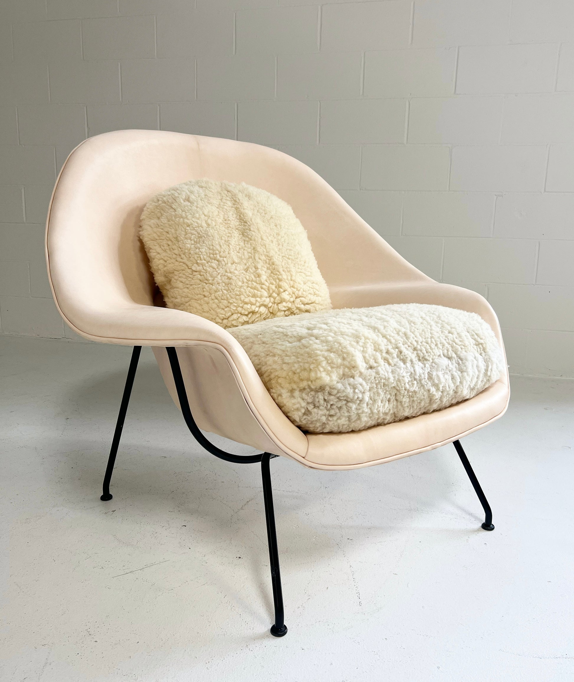 “Eero Saarinen designed the groundbreaking Womb Chair at Florence Knoll's request for ‘a chair that was like a basket full of pillows - something she could really curl up in.’ This mid-century classic supports countless positions and offers a comforting oasis of calm hence the name.” —Knoll.