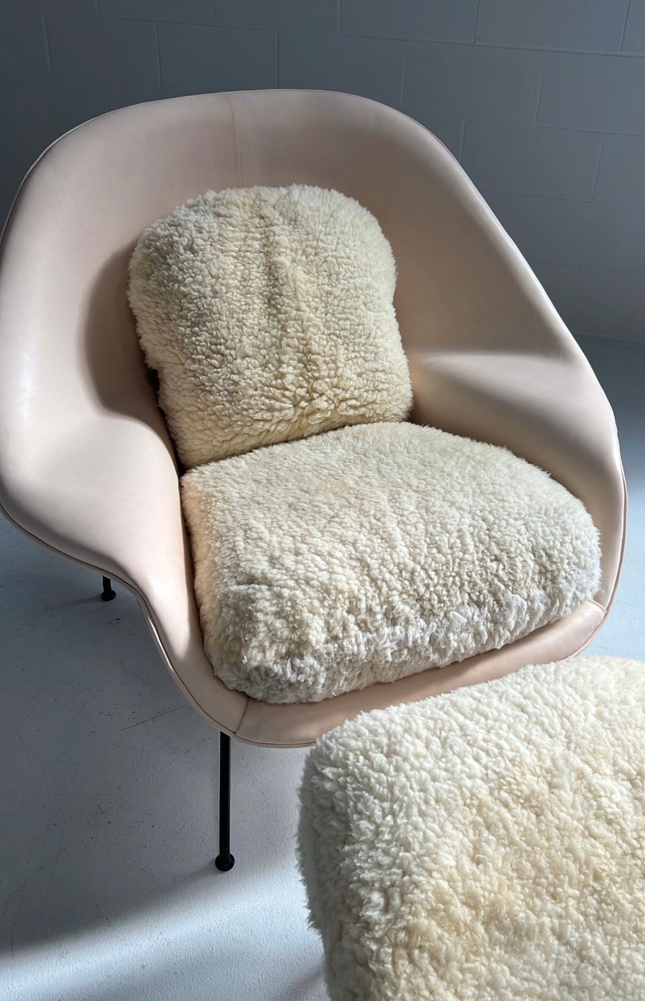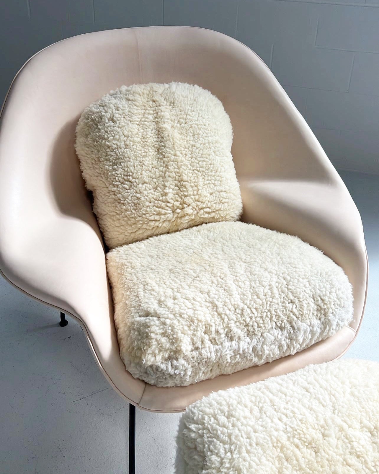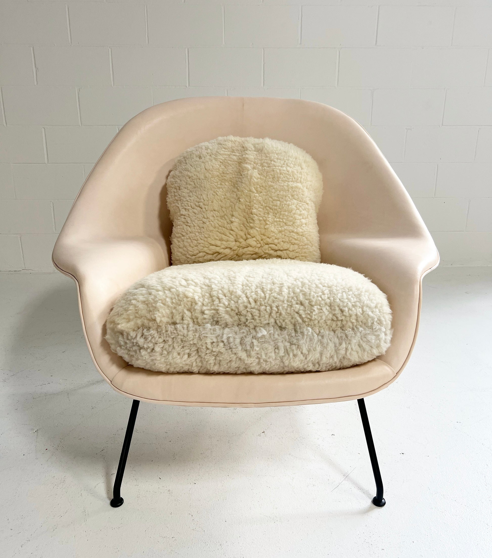 “Eero Saarinen designed the groundbreaking Womb Chair at Florence Knoll's request for ‘a chair that was like a basket full of pillows - something she could really curl up in.’ This mid-century classic supports countless positions and offers a comforting oasis of calm hence the name.” —Knoll.
