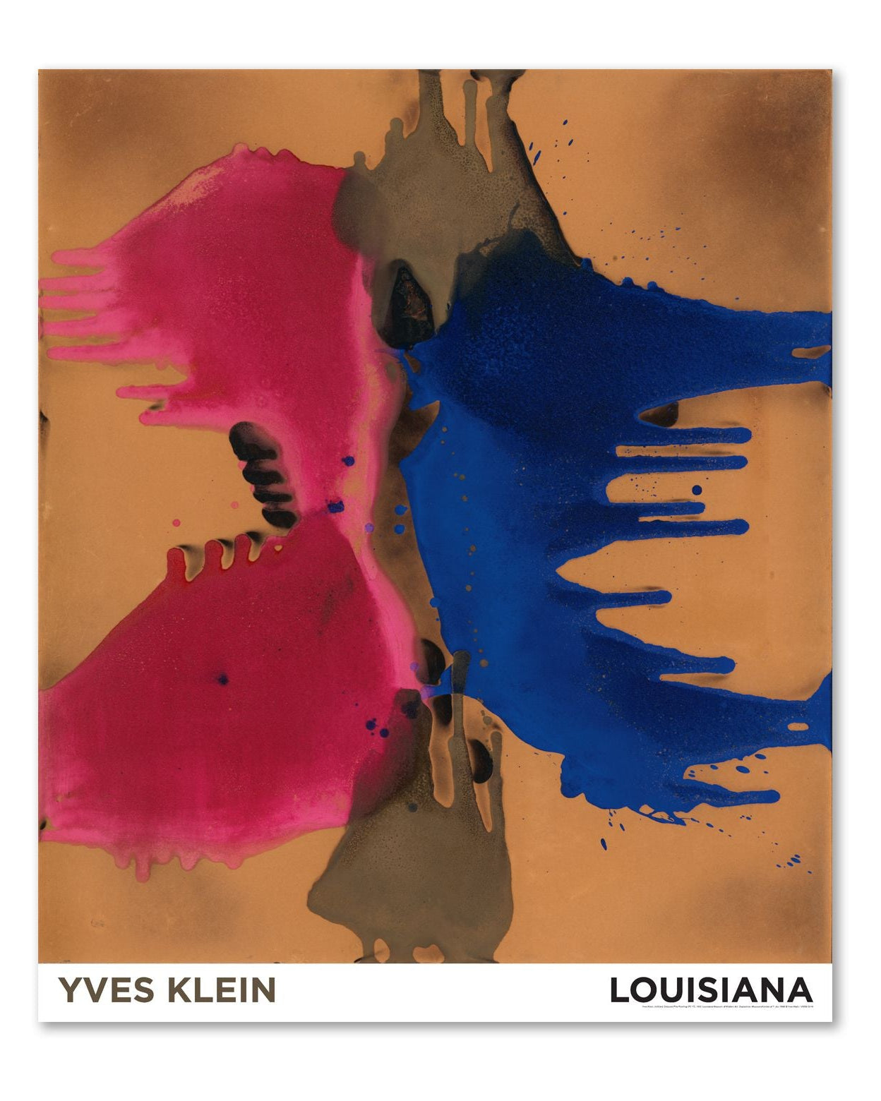 Louisiana poster with the work, Fire Colour - fc 17 , (1962) by the French artist, Yves Klein, (1928-1962). Klein is one of the great figures in modern art - and represented in the Louisiana collection. Despite his untimely death at the age of 34, Klein became a leading figure in the movement, 'Nouveau réalisme', a pioneer in performance art and a role model for later artistic movements such as 'minimal art' and 'pop art'